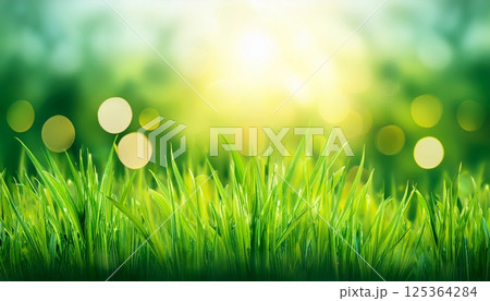 新鮮的綠色草地和散景背景