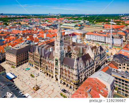Munich Germany, high angle view city skyline at Marienplatz new Town Hall Squarewith autumn foliage season
