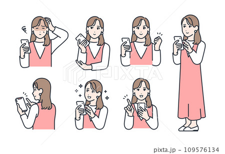 智慧型手機和年輕女性的簡單向量插圖集素材