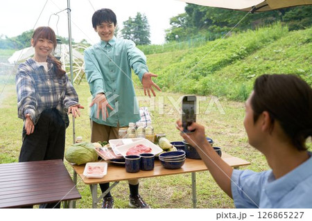 露營的朋友享受拍攝