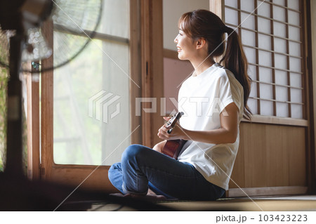 一個女人在玩夏威夷四弦琴