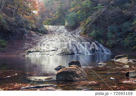 [秋葉秋葉瀑布的慢速快門拍攝]
