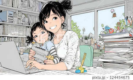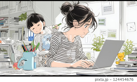 一個做遠程工作的母親和一個妨礙工作的女兒。