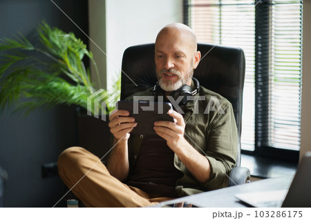 Mature man without job indulging in gaming addiction, spending his life immersed in virtual world of online games on laptop. Concept of idleness and unproductivity. High quality photo