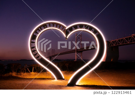 瀨戶內大橋紀念公園開園35週年紀念拱形紀念碑 心形LED照明 夜景