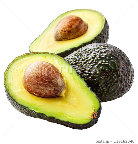 Ripe Avocado Halves, Smooth Green Skin, and Rich Creamy Flesh