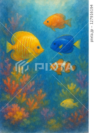 海底世界的熱帶魚和珊瑚礁 | 海底天堂水彩插畫 | 色彩繽紛的熱帶魚和珊瑚礁水彩插畫