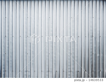 Corrugated metal wall reflecting natural light with weathered surface providing copy space for industrial texture backgrounds