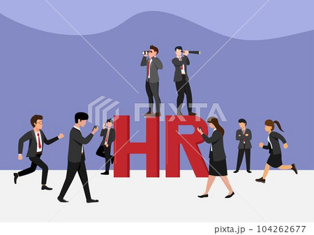 HR represents human resources. The character is looking for a new employee. or position in the company vector illustration