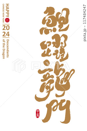 龍章鳳圖,龍年文字,中國文字,書法人類物件素材。