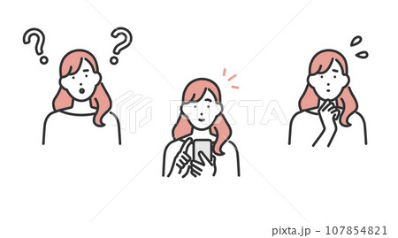 一個解決煩惱的年輕女人的簡單矢量插圖集素材