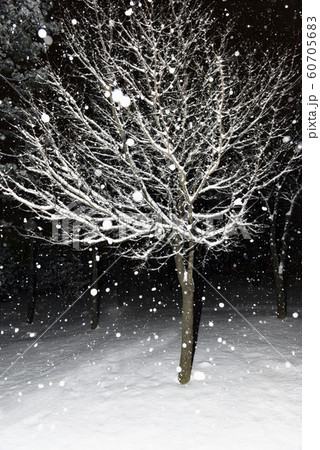 下雪的夜晚,在公園裡