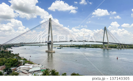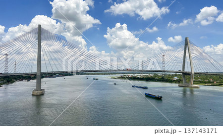 My Thuan 2 Cable-Stayed Bridge Over The Mekong River In Southern Vietnam.