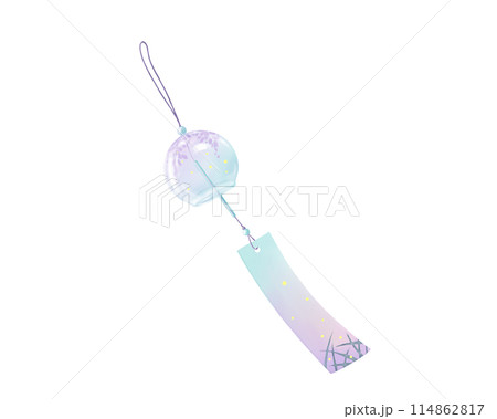搖曳的風鈴的逼真水彩插圖(紫藤花和螢火蟲圖案)