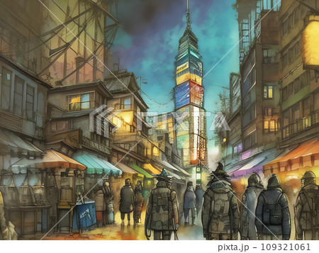 1956 年東京的一張老照片,照片中是淺草六區的娛樂區,兩旁林立著電影院