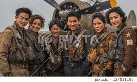 二戰戰鬥機飛越廢墟城市 / 水彩風格戰爭插圖
