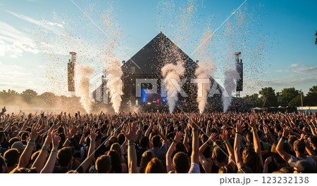 blurred empty theater stage with colourful spotlight, abstract concert lighting background