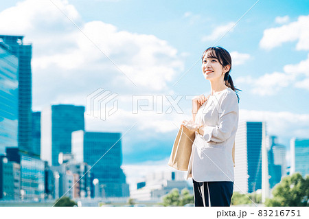 藍天和建築背景下的女商人