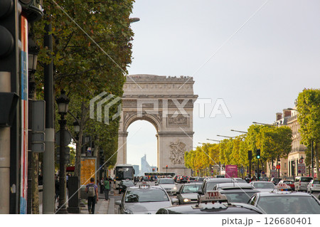 Portrait of confident ceo manager, young businesswoman in suit, looking determined and self-assured, posing on street on sunny day