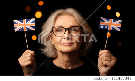 A group of people celebrating Australia Day in a park with a BBQ and flags