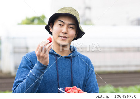 種植草莓的年輕人