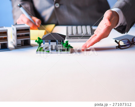 男性員工女性員工手部分削減住房介紹物業房地產圖像圓珠筆