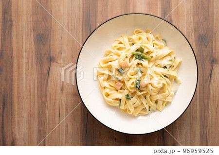 菠菜三文魚奶油意大利面