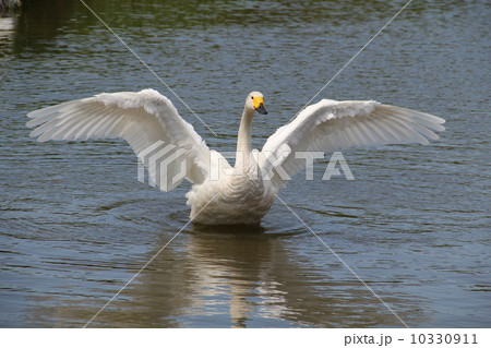 我們在天鵝北海道Kussharo湖的表面上擺動的天鵝群