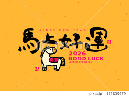 2026 Lunar New Year Horse. calligraphy"good luck".