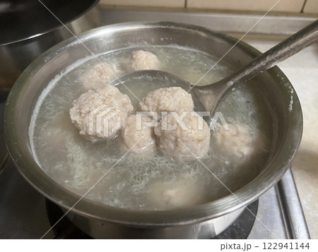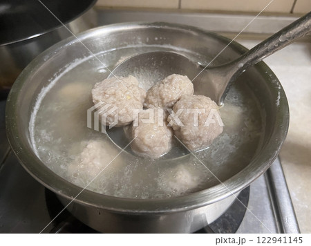 拍攝媽媽自製的獅子頭放入鍋子裡煮熟的過程