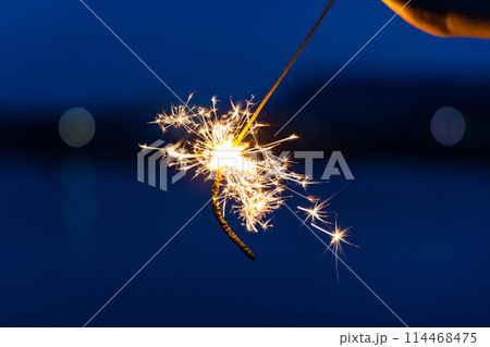 銀色手持煙火在城市夜景背景下閃耀的瞬間