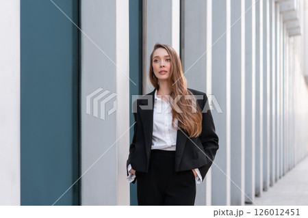 Team of young managers posing, blending bold patterns and sleek designs, showcasing confidence and style in modern business setting.