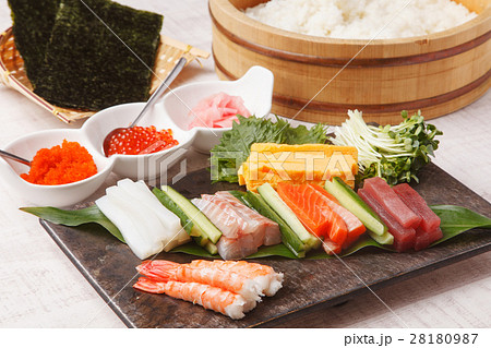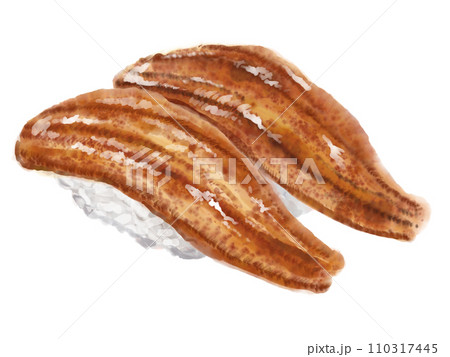 水彩插圖、手繪插圖、星鰻壽司和冷酒