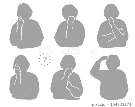 成熟和老年一代女性的剪影黑色插圖集思維手勢