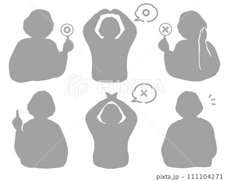 判斷 Marubatsu 的高級和成熟女性的剪影插圖集(灰色)