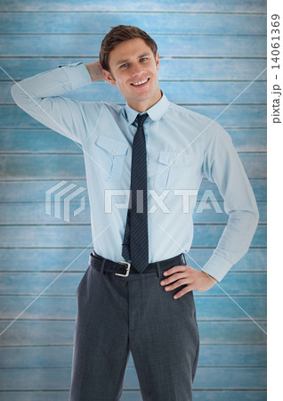 Composite image of thinking businessman scratching head