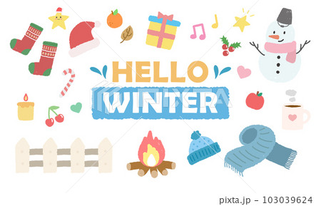 手繪蠟像冬季元素,可愛裝飾和生日插畫