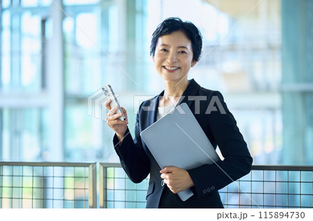 辦公室裡有智能手機的中層女商人
