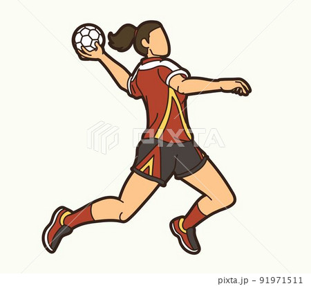 Handball Sport Female Players Mix Action Cartoon Graphic Vector