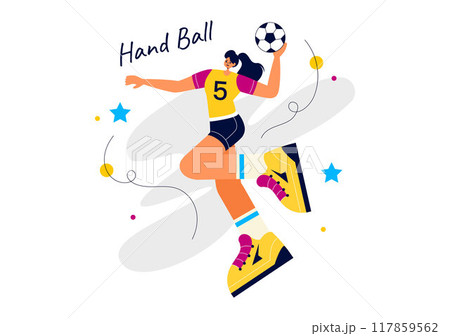 Handball Vector Illustration Featuring a Player Touching the Ball and Scoring a Goal During a Sports Competition in a Flat Style Cartoon Background