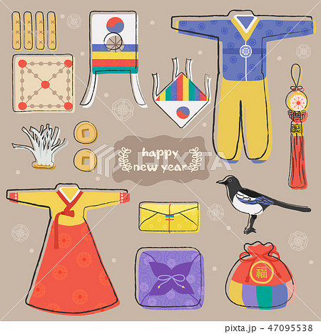 韓國傳統對象矢量插畫-西洞邊境,鬆平,幸運袋