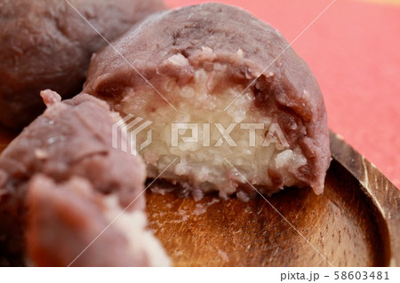 手工豆沙飯糰,切成兩半
