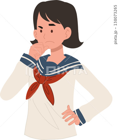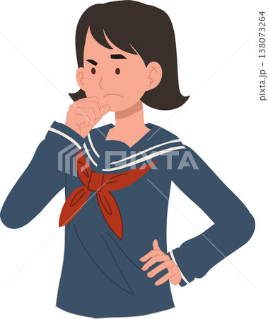 thinking girl student confused expression hand on chin cartoon illustration decision doubt concept school character