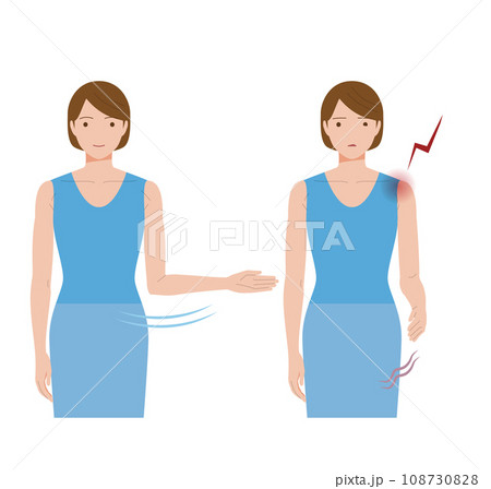 因肩周炎、肩周炎、肩周炎而肩膀疼痛,無法將手向一側張開的女性。