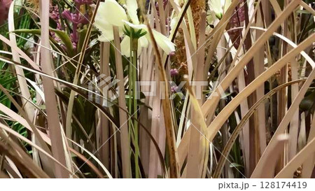 An Elegant Floral Arrangement that Features Delicate Grass Along with Beautiful Flowers