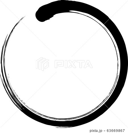 簡單的圓形筆刷式框架、朱紅色、透明白色背景的插圖素材