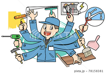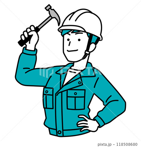 一名身穿工作服、手持鐵鎚的男子(全身)