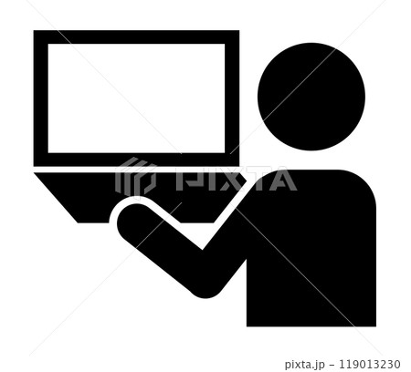 一個簡單的黑色圖標,顯示辦公室工作人員在筆記型電腦上工作