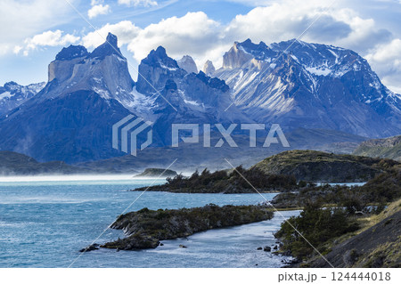 Lake Pehoe and peaks of Torres Del Paine