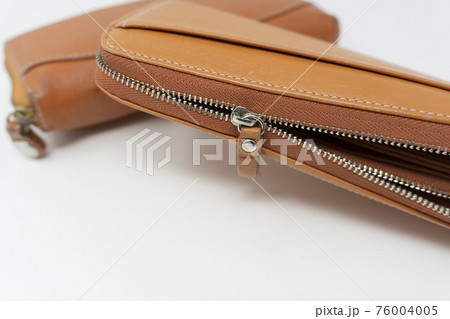 黑色皮革錢包拉鍊[白色背景]